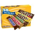 • Contains one (1) 30-count box of full-sized, individually wrapped Chocolate & Chewy Candy: (8) SNICKERS Milk Chocolate Bars, (6) M&M’S Peanut Chocolate Candy, (6) M&M’S Milk Chocolate Candy, (4) SKITTLES Original Chewy Candy, (3) STARBURST Original Chewy Candy, and (3) 3 MUSKETEERS Milk Chocolate Bars Assortment