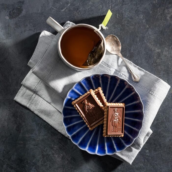 • Square chocolate biscuits with Le Petite Ecolier, or ‘The Little Schoolboy’, design