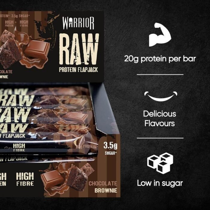 Warrior Raw Protein Flapjacks – 12 Bars x 75g Each – Packed with 20g of Protein – Low Sugar, High in Fibre (Choc Brownie)